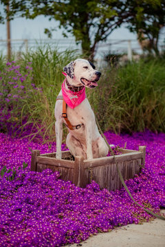 “English pointer mix phenotype white dog …” from stock.adobe.com and used with no modifications.