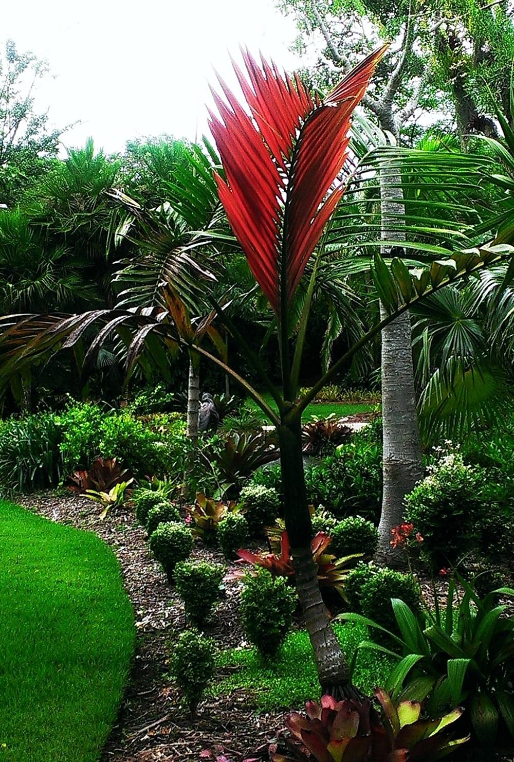 In the wild, Feather Palms can be seen towering above the forest canopy, showcasing their brilliant red leaves. This adaptation helps them capture sunlight efficiently, even in dense forest conditions.