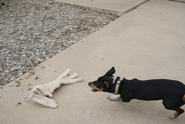 “K9DIY: Make a flirt pole on the cheap …” from teamunrulyblog.wordpress.com and used with no modifications.